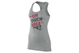 Celebrating a banner year in sports with vibrant print detail, the Nike "Untouchable" Women's Tank Top offers a motion-friendly racerback silhouette in a body-hugging fit.